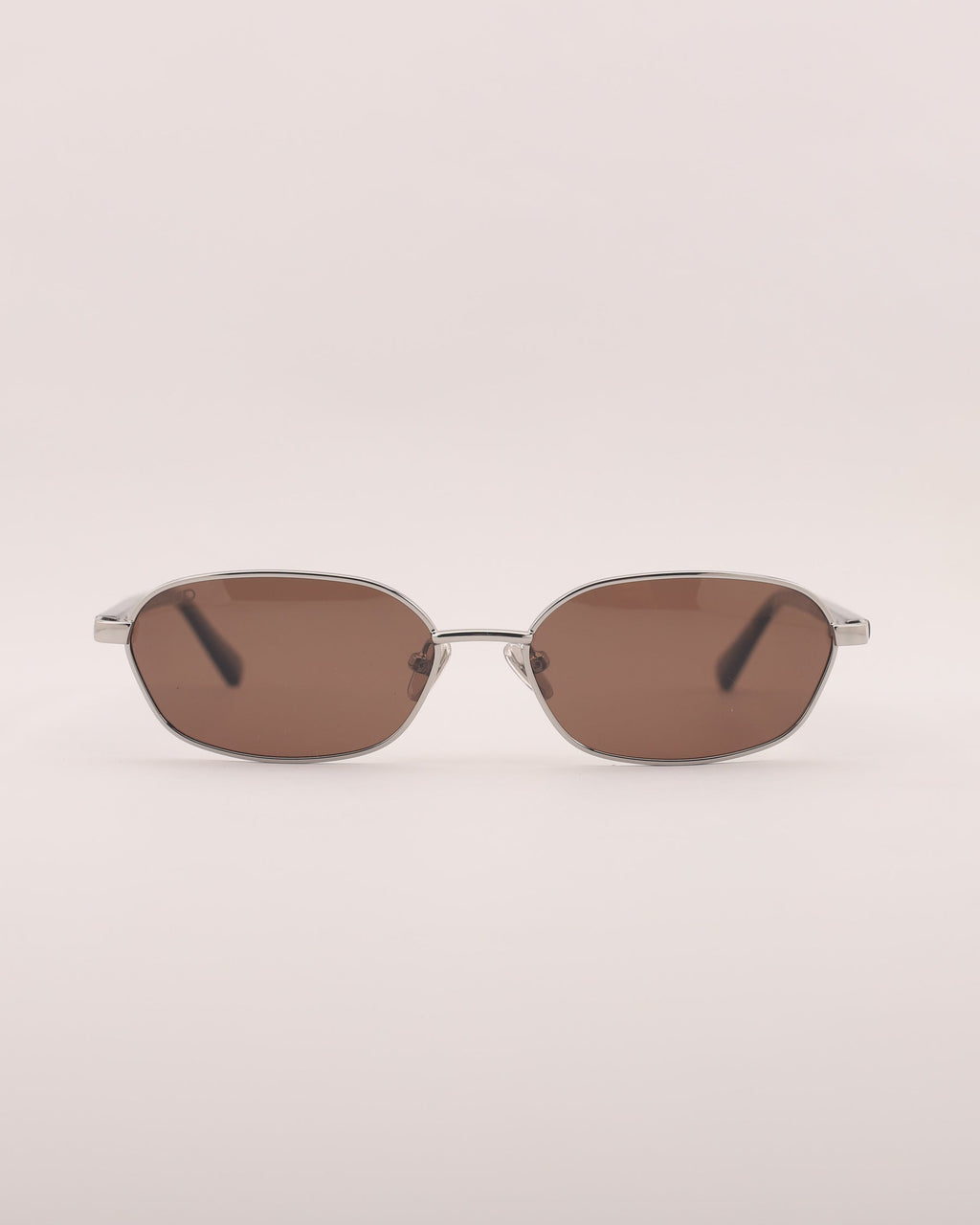 Sunglasses made of metal with a glossy silver front and glossy tortoiseshell temples. Compact brown lenses with UV 400 protection and polarization.